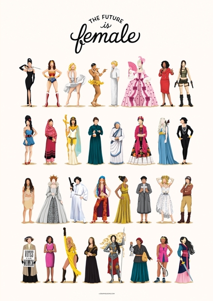 "Empowered Women Icons" poster by Nour Tohme. This vibrant artwork bursts with the essence of female empowerment, showcasing a diverse lineup of iconic women from history and fiction. Each figure, from the fierce to the fabulous, embodies strength and unity, all under the bold slogan "The Future is Female." Perfect for modern spaces, this piece transforms any wall into a celebration of femininity and diversity. It's not just art – it’s a statement, a call to action, and a reminder that empowerment looks good on everyone.