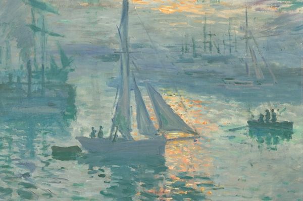 "Sunrise (1873) by Claude Monet is a key painting that helped define the Impressionist movement. It depicts Le Havre harbor at dawn, with a sky in orange and blue. Monet’s loose brushstrokes capture changing light and atmosphere, and the title Impression, Sunrise inspired the term "Impressionism.""