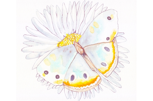 "Inspired by a butterfly photo shoot, I created this delicate watercolor. Soft pastel colors and gentle brushstrokes blend the butterfly's fragile wings with the simplicity of a daisy, highlighting the natural harmony between these two delicate elements."