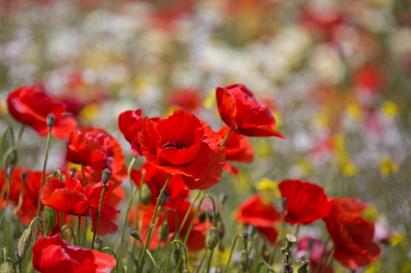 "Poppies" poster by Lena Östberg. Experience the vibrant allure of poppy fields captured in stunning detail. This close-up artwork showcases bold red blooms swaying in a sunlit meadow, surrounded by a kaleidoscope of colors. It’s like summer in a frame – a celebration of nature’s beauty that instantly uplifts any space. Perfect for those who appreciate the delicate yet striking essence of flowers, this piece brings a touch of Mallorca’s charm right into your home.