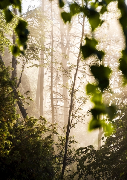 "Jungle of Oulanka" poster by Ukko-Pekka Jaakkola. Step into the enchanting Jungle of Oulanka, where fog dances with sunlight, creating a mystical atmosphere. Towering trees emerge from the mist, their silhouettes whispering secrets of the Kitkajoki River. This artwork captures the essence of adventure and wanderlust, inviting you to explore the lush greenery of Oulanka National Park. Perfect for those who crave a touch of nature's magic in their space, this piece is a vibrant reminder of summer's embrace and the thrill of discovery.