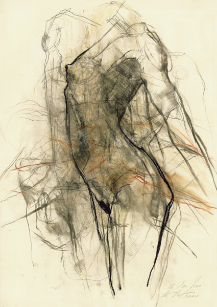 "This abstract artwork features dynamic lines and subtle color blending, creating an impression of movement and emotion. Its sketch-like quality and organic forms evoke a sense of spontaneity and raw expression in modern art."