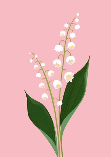 "Konvaljkalas" poster by Nur Rydberg. A delightful arrangement of small white bellflowers dances against a soft pink backdrop, creating a vibe that's all about springtime joy. This minimalistic piece captures the essence of lily of the valley, bringing a fresh and playful energy to any space. Perfect for kitchens, hallways, or children's rooms, it’s like a little celebration of nature right on your wall. Brighten up your decor with this charming artwork that whispers warmth and cheer!