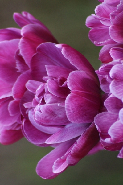 "Tulips " poster by Helen Mattsson. A group of dark pink tulips with a dark background.