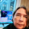 "Kvinna funderar på om hon ska äta frukt eller blommor."