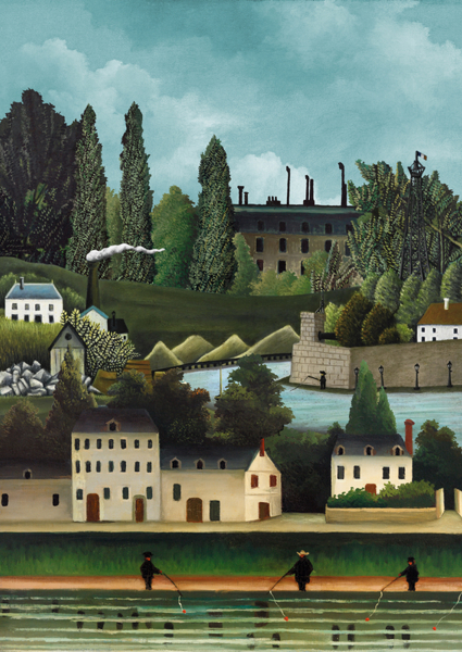 "Rural Serenity: A Harmonious Landscape of Industry and Nature" poster by Marja van den Hurk. This poster is a vibrant slice of life, capturing a whimsical landscape where nature and industry collide. Picture this: serene waters reflecting quaint houses, while fishermen casually reel in their catch. But, like, there’s a hint of nostalgia here—those smokestacks in the background? They whisper stories of a bygone era. You know, it’s all about that playful contrast between tranquility and the hustle of life. Perfect for adding a splash of charm to any wall. Grab it and let your space breathe a little history!