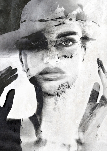 "Cacoethes" poster by Linnea Frank. This artwork captures an intriguing blend of mystery and allure. The black and white tones create a striking contrast, emphasizing the enigmatic expression of the figure. Layers of texture and shadow play across the face, evoking a sense of depth and complexity. It's like a visual whisper of that irresistible urge to dive into the unknown – the thrill of the inadvisable. Perfect for those who appreciate art that sparks curiosity and invites contemplation.