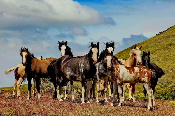 "The photo is taken in El Calafate in Patagonia. The horses are not wild, but they have extreme extensive areas fenced around to move in. Probably they feel free like wild horses. "