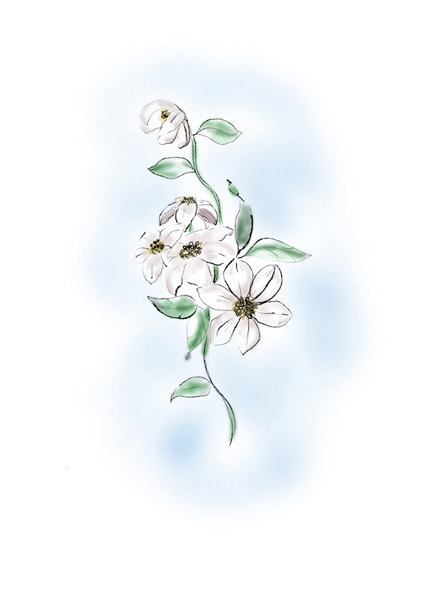 "Rosie" poster by Sandra Mohlin. Delicate blooms dance against a soft blue backdrop, capturing the essence of tranquility. This artwork features elegantly sketched white flowers, each petal whispering stories of serene summer days. The gentle curves and subtle hues evoke a sense of calm, making it a perfect addition to any space seeking a touch of nature's grace. Ideal for floral lovers, this piece brings a breath of fresh air into your home.