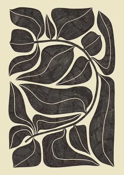 "LIF 4" poster by Mariana Prata. Dive into a world where abstract meets botanical in this striking piece. The interplay of dark, flowing lines and soft, organic shapes creates a dance of leaves that feels both modern and timeless. It’s like nature’s whisper, captured in a digital embrace. Perfect for adding a touch of sophistication to any interior, this artwork invites you to explore the beauty of Brazilian flora in a fresh, playful way. A must-have for those who appreciate the fusion of art and nature.