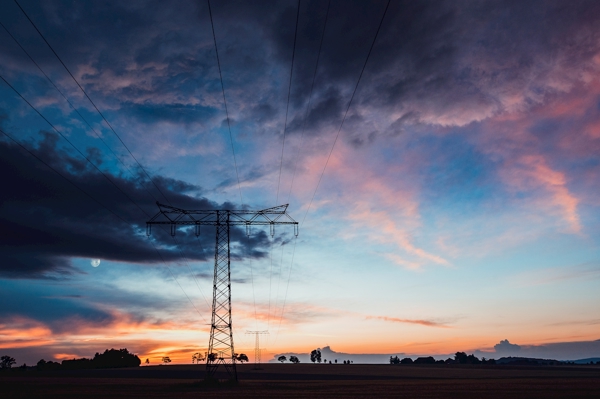 "Clouds at sunset" poster by Andreas Puschmann. A stunning interplay of colors unfolds in this artwork, capturing the moment when day surrenders to night. The vibrant hues of sunset blend seamlessly with dramatic clouds, creating a canvas that feels alive. Silhouetted against this breathtaking backdrop, a towering power line stands as a stark reminder of human presence in nature. It's a visual dialogue between serenity and industrial life, inviting viewers to ponder the beauty in contrasts. Perfect for those who appreciate the unexpected harmony of the natural and man-made worlds.