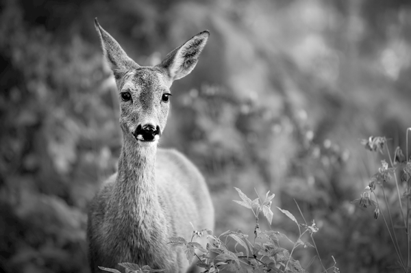 "The roe deer" poster by Jennifer Johansson. A curious roe deer stands just a heartbeat away, caught in a moment of pure wonder. This black-and-white gem captures the essence of wildlife in Sweden – a glimpse into nature's magic. The soft focus and delicate details create an intimate connection, as if the viewer is peering through a window into a secret world. Perfect for those who appreciate the beauty of the wild, this artwork invites you to embrace the serene charm of nature.